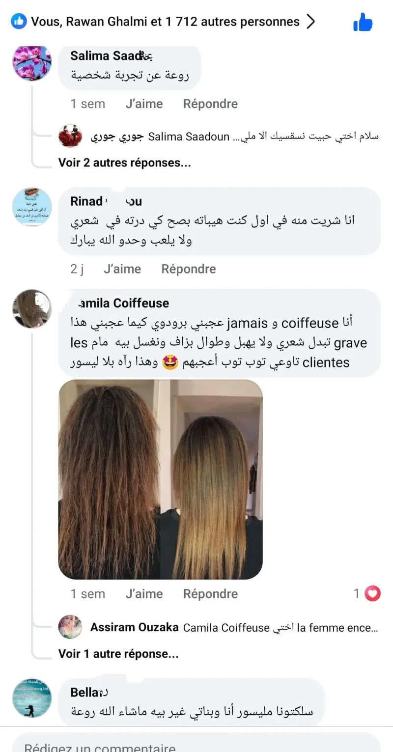 تم تجربة المنتج على أكثر من 10 آلاف سيدة يمتلكن أنواع مختلفة من الشعر وقد أثبت المنتج فعاليته مع أكثر من 90% من تلك الحالات، وجميعهن أكدن على أن المنتج أفضل بكثير من المنتجات الأخرى المتخصصة في العناية بالشعر وترطيبه.