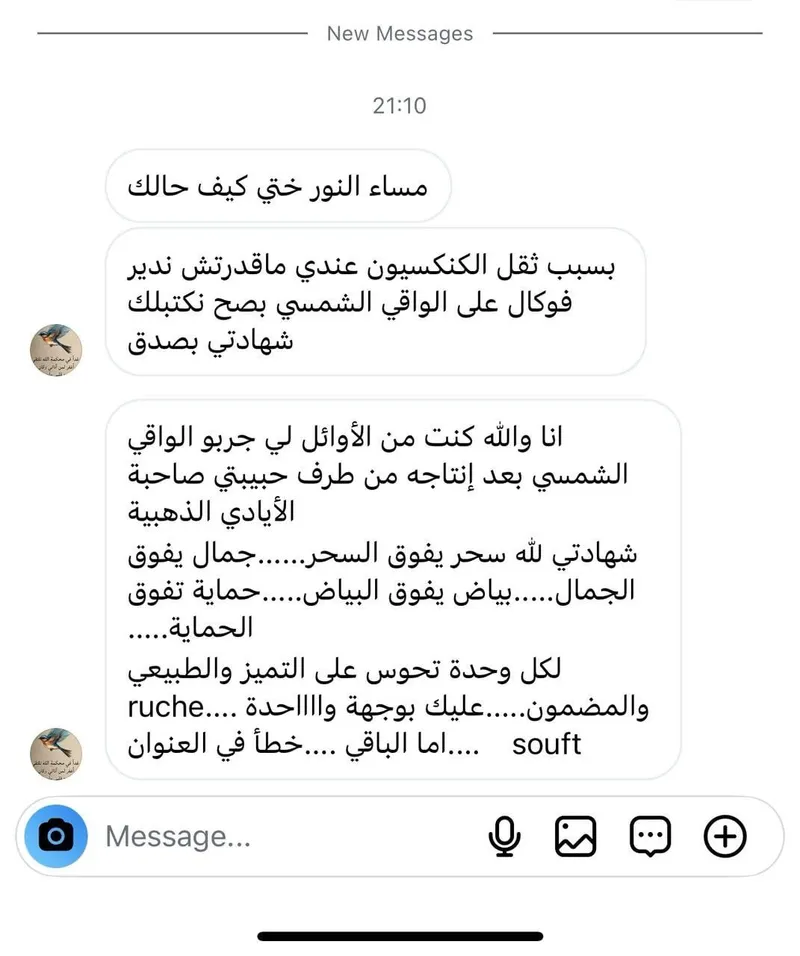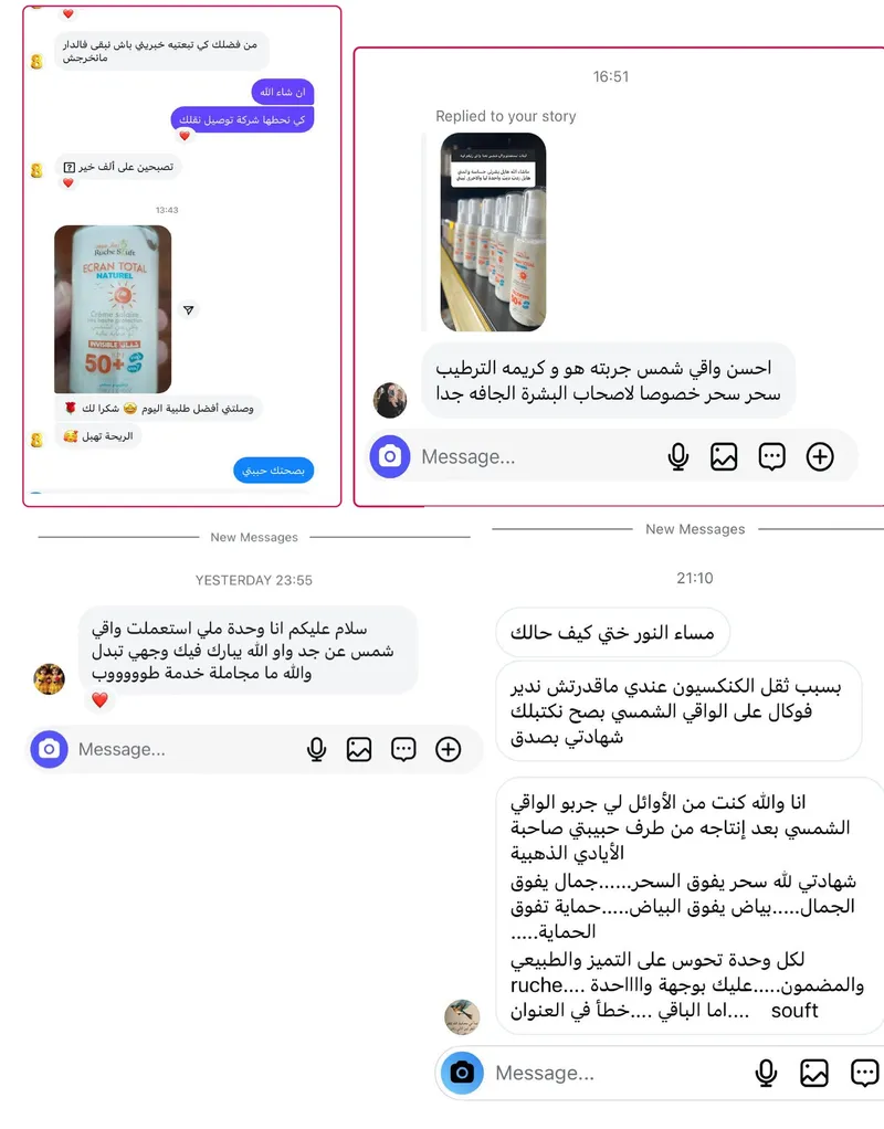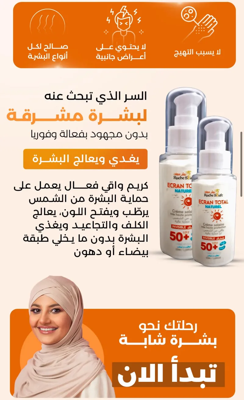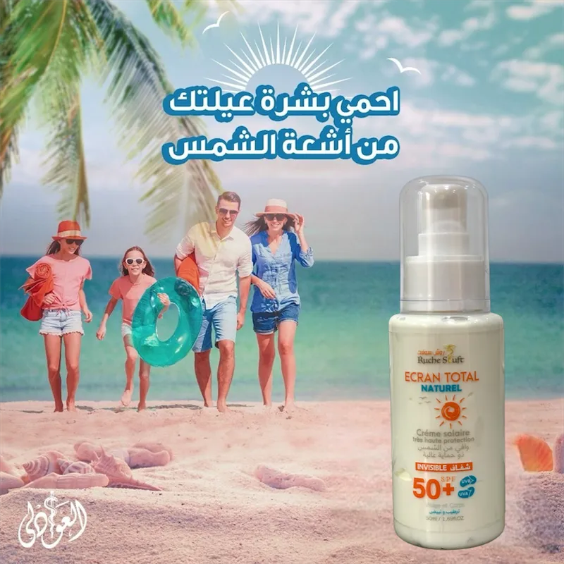 واقي الشمس موجود في كل مكان… لكن الطبيعي وين تلقاه؟! قولي وداعًا لتهيج البشرة والمواد الكيميائية! Ruche Stuft جابلك حل طبيعي 100% واقي شمس شفاف، غير دهني، حماية SPF 50+ صالح للوجه والجسم وحتى للبشرة الحساسة!